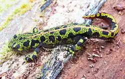 Some amphibians are abundant in or near ponds and rivulets throughout the whole system, such as Rana perezi, Bufo bufo, Bufo calamita, Alytes obstetricans, Triturus marmoratus and Lissotriton helveticus, the latter also at high altitude, whether in intermittent or permanent bodies of water. Hyla arborea and Salamandra salamandra are somewhat rarer, but still having a wide distribution, especially in humid forested zones. The Iberian ribbed newt (Pleurodeles waltl), however, is rarely found in the mountainous areas. Aquatic invertebrates, including the Austropotamobius pallipes crayfish, and certain fishes, such as Salaria fluviatilis and Cobitis paludica are common in the upper course of the Sistema Ibérico rivers.[9] Some mountain streams have been stocked with trout.[10]