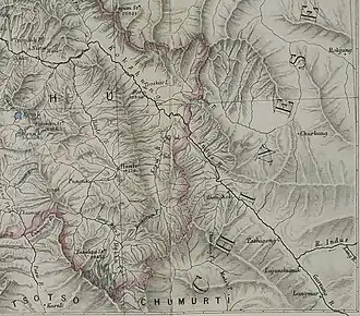 Skakjung or Kokzhung[1][a] is 45–kilometer long pasture land in Indus River valley in Southern Ladakh.[5] It is traditionally used by nomads of nearby villages such as Chushul and Nyoma as well as Rupshu. The Skakung pasture land can be used year-round because it rarely snows in the Indus Valley.[6][7] It lies on the right bank of Indus river, between Dumchele in the south and Dungti-Loma Indus river bend in the north.