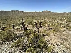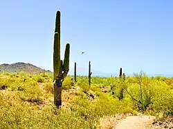 The landscape is desert and mountain. Desert mule deer, javelina, desert fox, raptors and Sonoran Desert tortoise are found in the park. Vegetation includes ironwood, palo verde and mesquite trees; many types of cacti are also found.[2]