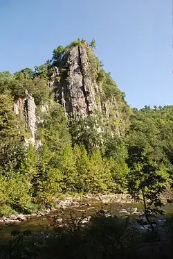Blue Rock, composed of the Late Silurian Tonoloway Formation limestone, in the lower Smoke Hole Canyon