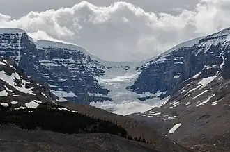 ![]() Snow Dome and Dome Glacier seen from the Icefields Parkway | |