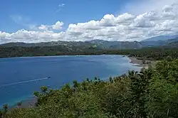 At the south of the basin lie the Tiruray Highlands, a moderately high mountain range blocking the basin from the southern coastline.[4] Southeast of the mountains lies Sarangani Bay.