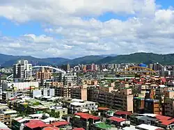 At the outset of one-party rule by the Kuomintang (1945-1990), the Mandarin Chinese reading of the kanji characters 松山 (i.e. Sung-shan) was adopted as the name of the district, which in 1946 officially comprised 26 boroughs (里). In 1949, the area's tea estates gave way to military housing for lower-income Kuomintang refugee families. The bodies of many residents and political victims from Taiwan's martial law period are buried in hillside cemeteries that now overlook the Taipei 101 shopping district.[2][3] By 1980, Songshan was the most populous area of the city.