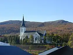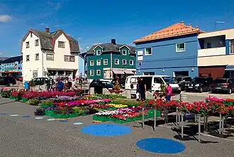 Sortland (Norwegian)ⓘ or Suortá (Northern Sami)[4] is a town[1] and the administrative centre of Sortland Municipality in Nordland county, Norway. The town is located on the east coast of the island of Langøya, along the Sortlandsundet strait. In 1997, the municipality decided to declare "town status" for the urban area of Sortland. Sortland is the largest town and commercial centre in the whole Vesterålen region and is often referred to as "the blue town by the strait" (den blå byen ved sundet) since many of the buildings are painted blue.[5]