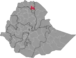 The South Eastern Zone (Tigrinya: ዞባ ደቡባዊ ምብራቕ) is a zone in the Tigray Region of Ethiopia. The South Eastern Zone is bordered on the south by the Southern Zone, on the southwest by Agaw in the Amhara Region, on the northwest by the Central Zone, on the north by the Eastern Zone, on the east by the Afar Region, and it surrounds the enclaved Mekelle Special Zone.