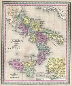 Map of the Bourbon-led Kingdom of the Two Sicilies from 1853, seven years before the annexation by the House of Savoy