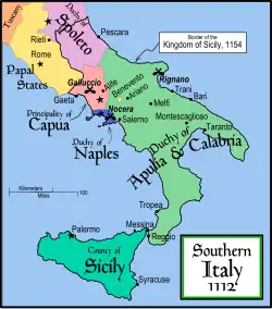 The Kingdom of Sicily at its greatest extent, during the 12th century