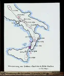 Chronological map of the main seismic events in Southern Italy during the modern and contemporary periods