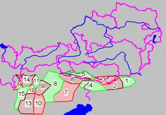 Ranges of the Southern Limestone Alps according to the Alpine Club classification (from east to west):