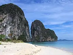 The limestone of the west coast has been eroded into many steep singular hills. The parts submerged by the rising sea after the Last Ice Age now form many islands, like the well-known Phi Phi Islands. Also well known is the so-called James Bond Island in Phang Nga Bay, featured in the movie The Man with the Golden Gun.
