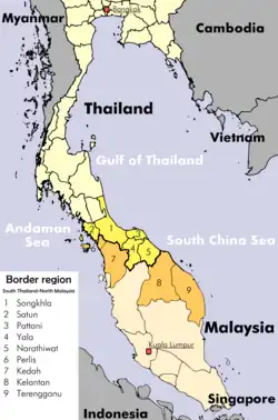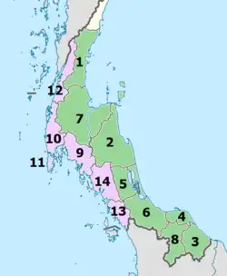 The Office of the National Economic and Social Development Council (NESDC) identities Southern Thailand as 14 provinces.[6]