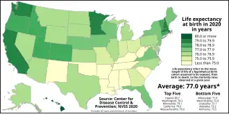 - ^ Cullen, Mark R.; Cummins, Clint; Fuchs, Victor R. (2012). "Geographic and Racial Variation in Premature Mortality in the U.S.: Analyzing the Disparities". PLOS ONE. 7 (4): e32930. Bibcode:2012PLoSO...732930C. doi:10.1371/journal.pone.0032930. PMC 3328498. PMID 22529892.