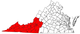 Southwest Virginia has long been a Republican stronghold, dating back to the Jim Crow era. For twenty years (1903-1923), Virginia's 9th congressional district was the only congressional district in Virginia — and one of the few in the entire former Confederacy — to be represented by a Republican. The district alternated between Democratic and Republican representation over the rest of the century. Some of the election results were so close — and questionable — that the district became known as "The Fighting Ninth."[5] The region has close ties with neighboring East Tennessee, Western North Carolina, Southern West Virginia, and Eastern Kentucky, which are all part of Appalachia and the Upland South.