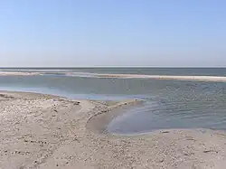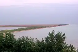 | Arabat Spit | 45°42′N 35°0′E / 45.700°N 35.000°E | 112[14] | 0.27–8[15] | 395[16] | The spit separates the Syvash lagoons from the Azov Sea; in the north, it is separated from the mainland (Henichesk city) by a narrow Henichesk Strait. | ||