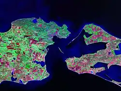 | Tuzla Spit | 45°16′6″N 36°33′0″E / 45.26833°N 36.55000°E | 4 | This used to be a single body, which was split by the waterflow into the alluvial Tuzla Island and Tuzla Spit in 1925, both located in the middle of the Kerch Strait. The Tuzla Island is about 6 km long, but is being washed away by the flow. Geographically, the island belongs to the city of Kerch, Ukraine, and the spit to Krasnodar Krai, Russia; however, the legal status is yet undefined. A heavy Russo-German battle occurred on the island on 6–9 October 1943.[18] | ![]()