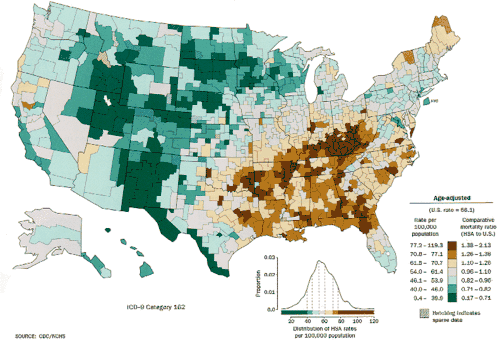 - ^ Introduction Archived 2009-11-24 at the Wayback Machine, Atlas of Stroke Mortality: Racial, Ethnic, and Geographic Disparities in the United States (Casper ML, Barnett E, Williams GI Jr., Halverson JA, Braham VE, Greenlund KJ). Atlanta, GA: Department of Health and Human Services, Centers for Disease Control and Prevention, 2003