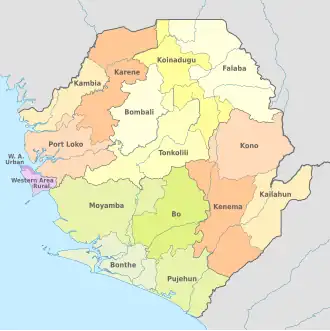 Sierra Leone is further divided into 149 chiefdoms.[1] The chiefdoms are hereditary, tribal units of local governance.[1] The World Bank sponsored the creation of elected local councils in 2004.[1]