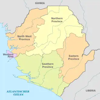 Sierra Leone is divided into 4 provinces and a Western Area for the capital Freetown.