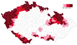In the 2021 census, 24,632 people in the Czech Republic claimed German ethnicity, out of which 15,504 in combination with another ethnicity.[22] However, the Bohemian German dialects and the Moravian German dialects have largely disappeared because remaining Germans employ Standard German.