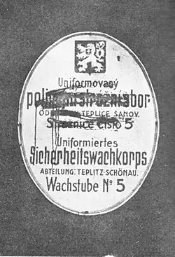 Czech inscriptions smeared by Sudeten German activists, March 1938, Teplice