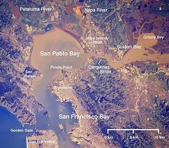 San Pablo Bay with Suisun Bay at upper right.