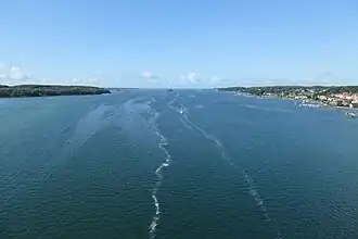Svendborgsund is a strait that separates Funen from Tåsinge.[1] In the west it flows into the South Funen Archipelago by the island Skarø, and in the east it ends in Thurø Sund and Skårupøre Sund, almost separated by Thurøbro, which is mostly a dam.