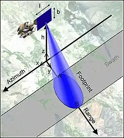 Swathe width may also refer to the width of any repetitively cut, scanned or sampled strip such as in aerial mapping, lidar, radar or sonar scans or multibeam echosounder bathymetric surveys collected by a moving satellite, aircraft or ship.[3][4]