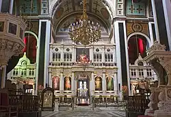 As in the rest of Greece, Syros has Eastern Orthodox churches. Metamorphosis is the most important Orthodox church on the island, Kimisis tis Theotokou is also significant and noted for the fact that it hosts a masterpiece by painter El Greco.[19] There is also an equal number of Catholic Church buildings on the island and some entirely Catholic villages; thus, it is one of the most significant places for the Catholic Church in Greece.[19] Syros is one of a few places where Catholics and Orthodox share a common date for Easter, which in Syros' case, is the Orthodox date.[20]