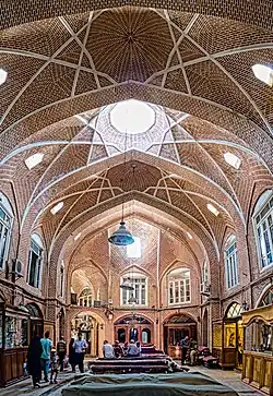 Tabriz contains many historical monuments, representing Iran's architectural transition throughout its long history. Most of Tabriz's preserved historical sites belong to Ilkhanid, Safavid and Qajar.[13][14] Among these sites is the grand Bazaar of Tabriz, which is designated a World Heritage Site.[15][16] From the early modern era, Tabriz was pivotal in the development of its three neighboring regions; namely the Caucasus, Eastern Anatolia and Central Iran.[17] As the country's closest hub to Europe, many aspects of early modernization in Iran began in Tabriz.[17] The Qajar dynasty was forced to cede the Caucasian territories to Imperial Russia following the two Russo-Persian Wars in the first half of the 19th century. Until 1925, the city was the traditional residence of the Qajar crown princes.