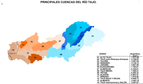 - ^ "La Cuenca | Distribución Territorial" (in Spanish). Confederación Hidrográfica del Tajo. Archived from the original on 29 September 2010.