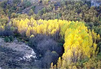 The Tagus basin can be divided into two large biogeographical zones: the Luso-Extremaduran province[7] (center-west), and the Castilian-Mestrazgo-Manchegan province[8] (center-east), with its natural boundary at the confluence of the Alberche. In short, this is a climatic-lithological differentiation: the limestone sector in the center-east and the siliceous soils in the center-west.