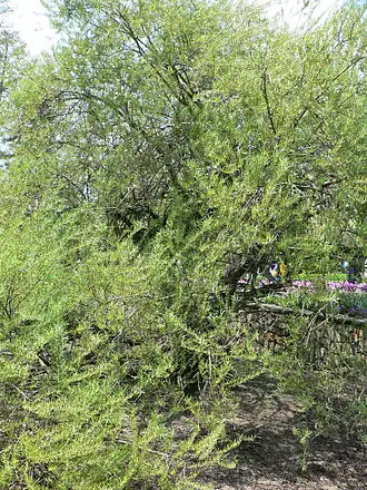 The presence of tamarisk (Tamaricetum gallicae) which replaces the poplar and willow groves when thermoxericity is very pronounced or when there is a salinized water table. The second situation is described in some sections of the Salado, Hoz and Cercadillo rivers and the first is the most representative of the lower reaches of the Henares and Tajuña rivers. The best representation is the tayaral of Soto de Aldovea and the one that marks the lower Henares at its confluence with the Jarama, there are also remains of tayaral in the Tajuña. Tamarix gallica dominates, although there is also Tamarix africana, and sporadically there are feet of Salix alba, Ulmus minor and even Populus alba. If it is a typically xerophytic tayaral, it is accompanied by Artemisia campestris, Carlina corymbosa, Asteriscus aquaticus, Glycirhiza glabra, Retama sphaerocarpa or Asparagus acutifolius.