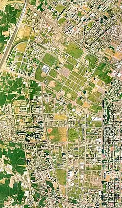 This area is adjacent to the 3rd, 4th, and 5th Redevelopment Zone. Before Taichung's 7th Redevelopment Zone Plan, only a few farmhouses were scattered along a limited number of narrow streets.[3] Today, this area is the site of Taichung's new city government center, and it is the central business district (CBD) of Taichung City.[4] It features broad and widely spaced boulevards, attractive apartments, department stores, and office towers, which are brightly lit at night. There are many universities nearby, such as Tunghai University and Feng Chia University.[5]