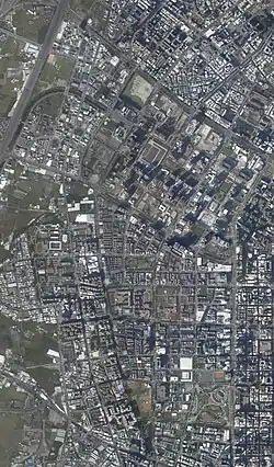 Its historical development began in 1986 when the Taichung City Government designated the agricultural area south of Taichung Port Rd. (present-day Taiwan Boulevard) and west of Wenxin Rd. as the 7th Redevelopment Zone. The goal of this redevelopment was originally to set up a secondary commercial center to relieve the old downtown area (Central District).[6] However, as the population continued to grow and the scale of the city expanded, Taichung's city center gradually moved westward.