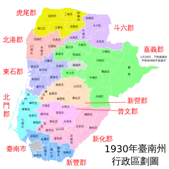 | Today part of | Tainan City, Chiayi City, Chiayi County and Yunlin County |