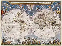 Determination of longitude at sea was not possible without a considerable margin of error until the mid 18th century. One of the methods that was used instead was dead reckoning, from the last point of land sighted. Lizard Point in Cornwall was a famous starting point for this, as was the 3,718 metre Teide volcano of Tenerife. From the early 1640s some Dutch cartographers were using Tenerife as a prime meridian in maps, with a significant increase in use after 1662.[2][3] Joan Blaeu started using it in 1663, Frederik de Wit in 1670, and German mapmakers Weigel and Homann in the 1720s/1730s.[4] After 1675 Tenerife was the predominant meridian on Dutch maps and in 1787 the Amsterdam Admiralty issued a formal statement of support to the meridian.[5]