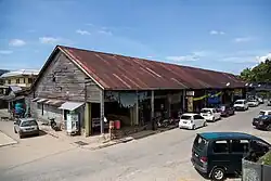 Originally, Tenghilan town had only one series of wooden shop-houses built in 1930 by the British.[6] The wooden shophouse was a double store, the upper part is the living room for the traders while the lower room is specially designed to carry out business most by Chinese.[6] This timber shop house also has a spacious living area to accommodate other items for business as well as pedestrian areas.[6] The first structure of the building was made of wood with a contiguous structure and the floor surface was cemented. In 1955, a series of shophouses were erected to replace the old shop building. But the old store is still intact and strong enough to carry on the business to this day. There is also a new building being built near Tamu (Weekly market). In 2014, the small town of Tenghilan had a new shop building with a two-story concrete building structure that provided greater convenience to the community there. Tenghilan town is listed as a historic shophouse building in Sabah.[6]