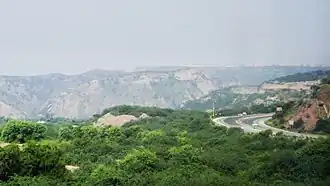 The desert largely consists of ridges of sand dunes and rolling sand plains which alternate with narrow valleys of flatter, more cultivable land.[12] These sand dunes are a prominent feature of the zone and consist of sediment reworked by wind and brought in by the Indus River, which lays upstream of the orogenic front.[9] They commonly reach heights of around 175m and cover 50-60% of the Thal desert.[13]
