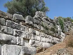 The island was colonised at an early date by Phoenicians, attracted probably by its gold mines; they founded a temple to the god Melqart, whom the Greeks identified as "Tyrian Heracles", and whose cult was merged with Heracles in the course of the island's Hellenization.[8] In the 5th century BC, Herodotus visited a sanctuary of Heracles on Thasos, presumably the Heracleion still visible today, and reported that it had been built by the Phoenicians.[9] An eponymous Thasos or Thasus, son of Phoenix (or of Agenor, as Pausanias reported) was said to have been the leader of the Phoenicians, and to have given his name to the island.[10]