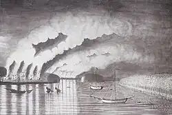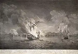 St. John River Campaign: A View of the Plundering and Burning of the City of Grimross (present day Arcadia, New Brunswick) by Thomas Davies in 1758. This is the only contemporaneous image of the Expulsion of the Acadians.