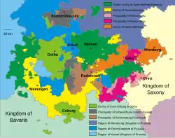 - The duchies of Saxe-Altenburg, Saxe-Coburg and Gotha and Saxe-Meiningen (Herzogtum Sachsen-Altenburg, Herzogtum Sachsen-Coburg und Gotha, Herzogtum Sachsen-Meiningen)