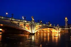 Tianjin is the pinyin spelling of the Chinese characters 天津. The name literally means 'the ford of the emperor'. The origin of the name is disputed. One traditional theory says that it was an homage to the Chu poet Qu Yuan, whose "Li Sao" includes the verse "... departing from the Ford of Heaven at dawn ..." (朝發軔於天津兮; zhāo fārèn yú Tiānjīn xī). Another says that it honors the former name of the Girl, a Chinese constellation recorded under the name Tianjin in the Astronomical Record section of the Book of Sui. A third says that it derives from a place name noted in the River Record of the History of Jin. The most common theory says that it was bestowed by the Yongle Emperor of the Ming, who crossed Tianjin's Gu River on his way south to overthrow his nephew, the Jianwen Emperor.[20]