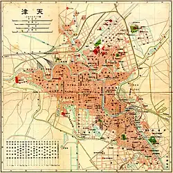 In terms of urban population, Tianjin is the seventh largest city in China. In terms of administrative area population, Tianjin ranks fifth in mainland China.[8] The walled city of Tianjin was built in 1404. As a treaty port since 1860, Tianjin has been a seaport and gateway to Beijing. During the Boxer Rebellion, the city was the seat of the Tianjin Provisional Government. Under the Qing dynasty and the Republic of China, Tianjin became one of the largest cities in the region.[9] At that time, European-style buildings and mansions were constructed in concessions, some of which are preserved today. After the founding of the People's Republic of China, Tianjin suffered a depression due to the policy of the central government and the 1976 Tangshan earthquake; however, it has been recovering since the 1990s.[10] Tianjin is classified as the largest type of port city, a Large-Port Megacity, due to its large urban population and port traffic volume.[11]
