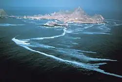 Drake anchors at this location which is 72 nautical miles north of Horn Island. Da Silva describes the islands as low and small. The crew hunts seal meat and ducks to provision the ship. Upon leaving, Drake begins a 25-day stretch of nonstop, northerly sailing. | [62] |