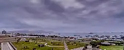 Ideas of this journey arose amidst cold war tensions between Spain and England.[4] During this time, Drake formed the idea to plunder Spanish ships in the Pacific Ocean and John Dee developed a formal proposal for English circumnavigation.[5] After Dee submitted his proposal to Elizabeth's Privy Council, Elizabeth and Drake met at her Greenwich palace in 1577 where they finalized written details of such a voyage.[6] In the plan, Elizabeth directed Drake to pass through the Strait of Magellan and sail north, up the coast of Chile, to 30° south latitude.[7] There was also the unwritten understanding, one too dangerous to record on paper, that Drake was to raid Spanish property.[8] He was to return home by the same route.[7] During the ensuing circumnavigation, an uncertain number of English sailors were lost at the cost of zero Spanish lives.[7]