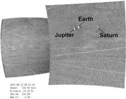 67. ^ Cermak, Alicia (May 22, 2003). "Earth and Moon as viewed from Mars". NASA Science. Retrieved April 14, 2025.