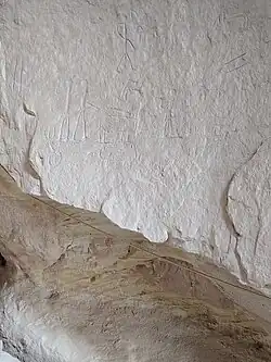 Many rock drawings are found throughout the valley that were created in the time of the different ruling empires over time. The Egyptians carved the most famous drawing, of chariots, consisting of Egyptian warriors holding axes and shields while driving ox-drawn chariots.[2] There is a road that leads visitors to the Chariots, located about two miles from the mines in a narrow valley.[3]