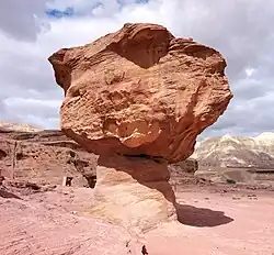 The Mushroom is an unusual monolithic, mushroom-shaped, red sandstone rock formation known as a hoodoo. The mushroom shape was caused by wind, humidity, and water erosion over centuries.[3] The Mushroom is surrounded by copper ore smelting sites from between the 14th and 12th centuries BCE.[2]