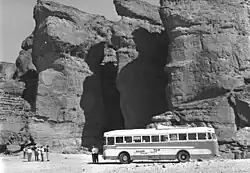 Timna Valley Park was opened by the Jewish National Fund to share Rothenberg's findings with the public, and there are around 20 different walking trails and some roads in the park to lead visitors to the various attractions. The Jewish National Fund, a non-profit organization, funded the creation of many of the non-historic tourist and family attractions and activities in the park.[23] The park includes a visitors recreation area with an artificial lake and a 4D film light-and-sound show.[24] The park is used as the location for open-air concerts and cliff-climbing events.[25] Because the park is not part of the national parks of Israel, there has been controversy over construction of hotels and a large tourist reserve in the area.[26][27]