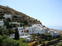 Tinos (Greek: Τήνος [ˈtinos]) is a Greek island situated in the Aegean Sea. It forms part of the Cyclades archipelago. The closest islands are Andros, Delos, and Mykonos. It has a land area of 194.464 square kilometres (75.083 sq mi)[2] and a 2021 census population of 8,934 inhabitants.[3]